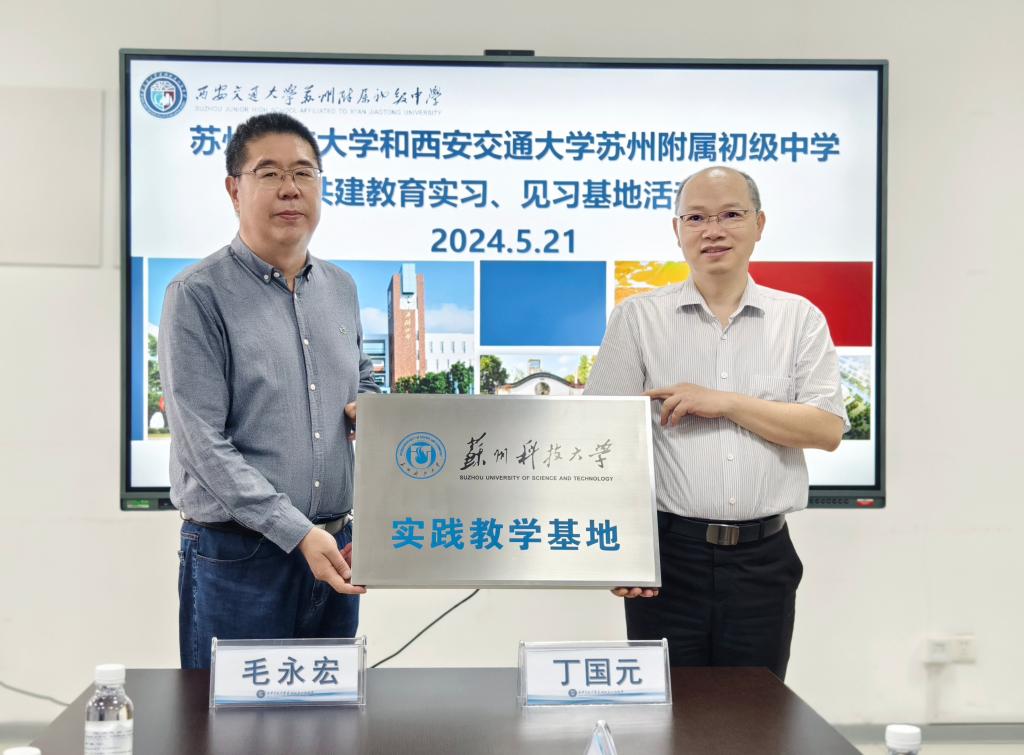 5月21日上午,伟德国际victor1946党委书记毛永宏带队先后赴工业园区西交大苏州附属初中及东沙湖实验中学,调研学生教育见习、教育实习和就业情况,并举行“实习实践基地”签约授牌仪式。伟德国际victor1946副院长兼副书记瞿晓庆、副院长孙虎及中文系系主任朱鹏杰陪同参与交流。