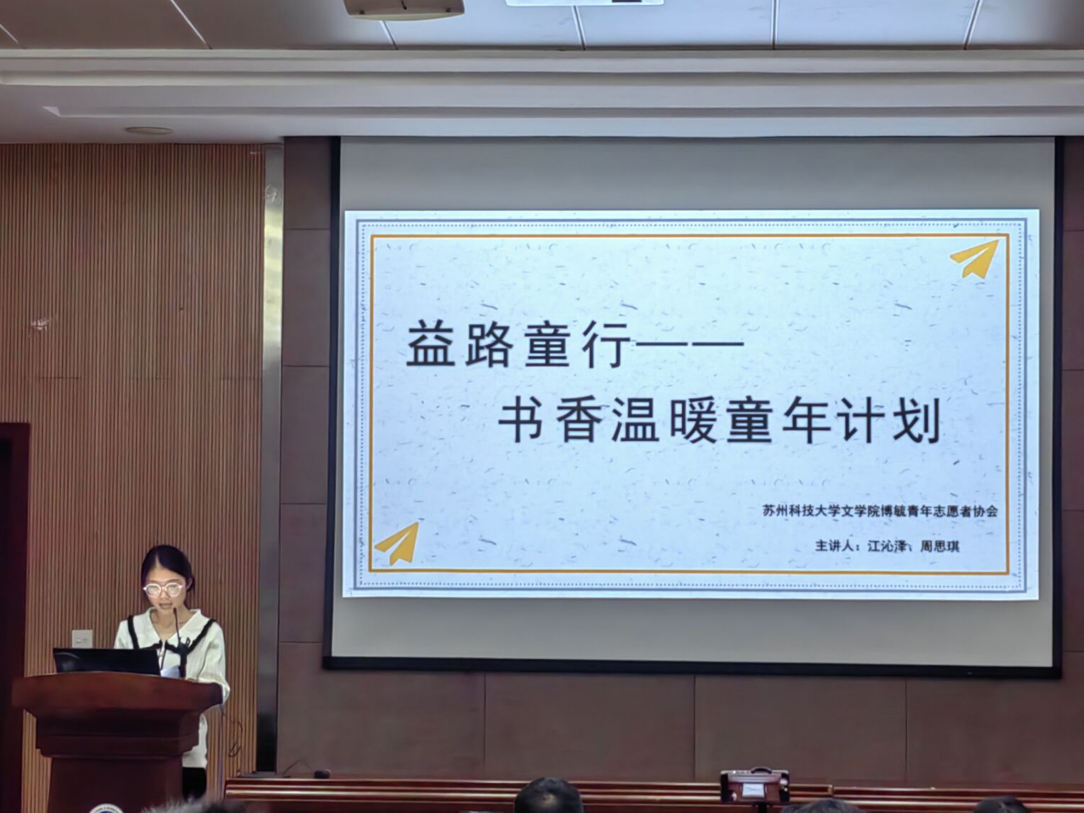 在活动结尾,两位暑期社会实践优秀调研报告团队代表向大家分享了他们在传统文化保护和环保实践的活动中撰写调研报告的感悟,向新生传授撰写经验和一些注意事项。