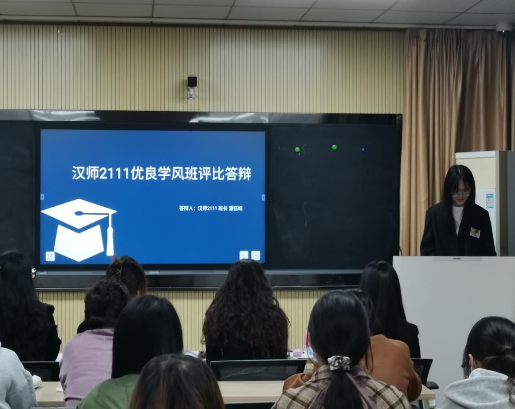 本次答辩顺序由各班负责人抽签决定,分为班级展示与现场答辩两个环节。首先,各班负责人抽签决定现场答辩的问题。然后,通过简洁明了的PPT从班团建设、学风建设、宿舍建设班级特色活动、个人与集体荣誉等多个方面向在场评委与观众们展示各班的良好精神风貌。接着,各班负责人又条理清晰地回答了抽到的问题以及评委的现场提问。其中,汉师2012的班长陈毓雯用生动的语言向我们展现了汉师2012这一朝气蓬勃、充满热情活力的班集体,并重点介绍了班级开展的许多特色活动,值得其他班级借鉴。同时,广电2012的班长李亚美详细介绍了班级的基本情况和个人、集体在各项活动中获得的奖项,同学们都在各自的领域中绽放着独特的风采。在六组负责人答辩结束后,就进入了严肃紧张的打分环节。