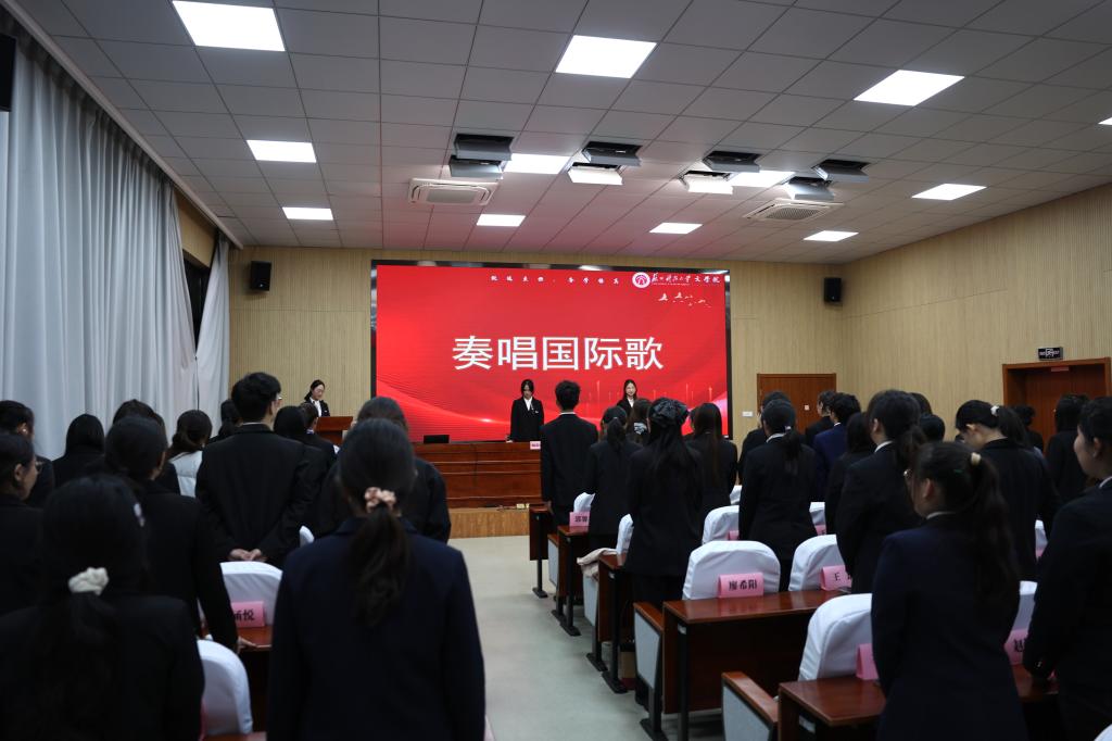 大会在雄壮的国歌声中拉开帷幕。孙佳明代表伟德国际victor1946团委向大会的召开表示热烈祝贺,向支持学生工作的老师和同学们表示由衷感谢,向全院青年学生致以亲切的问候。他对学院过去一年所取得的高质量发展成果表示肯定,并寄语广大伟德国际victor1946学子要真正成为勇于担当民族复兴重任的时代新人。
