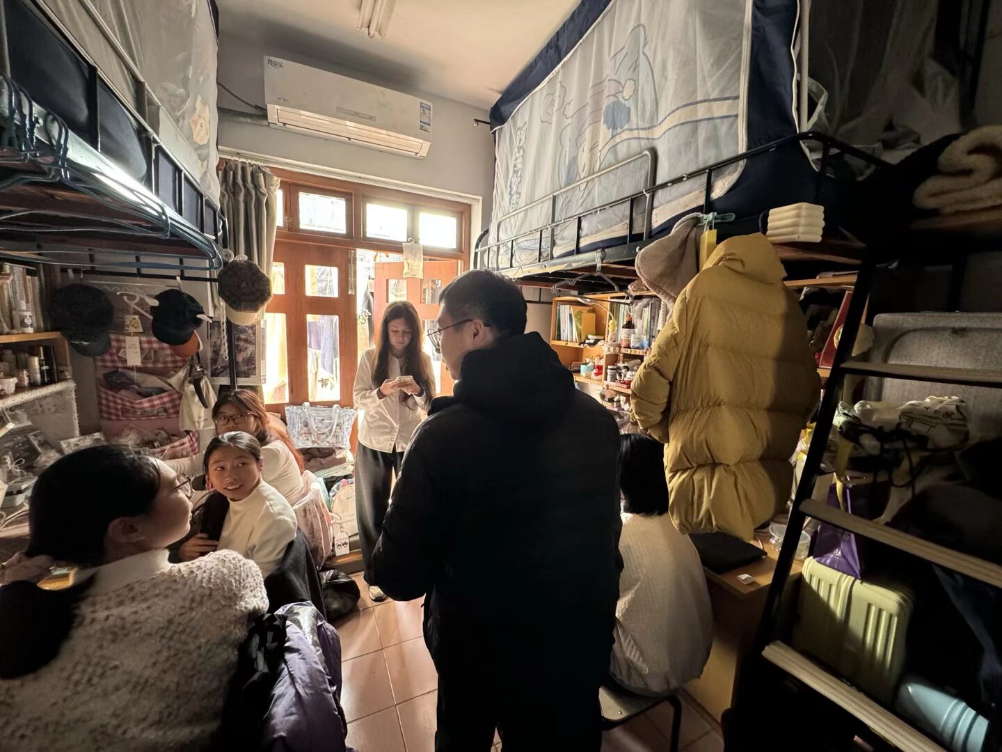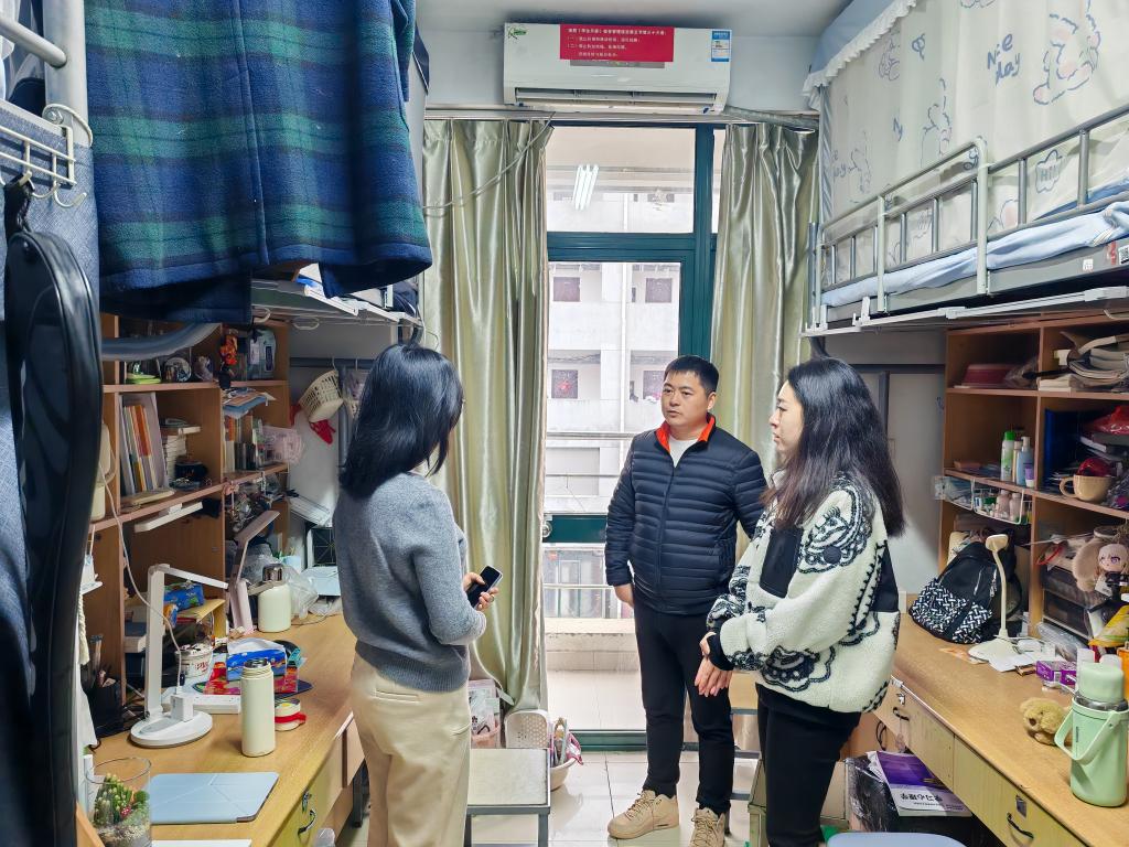 走访过程中,辅导员们逐间排查宿舍安全隐患,细致叮嘱学生严格遵守学校寒假宿舍管理规定,时刻绷紧安全之弦,切实做好用电、防火、防盗及出行安全防护。同时,辅导员们还关切询问学生假期学习规划、生活需求,耐心倾听学生诉求,主动为大家排忧解难,全力营造安心、舒心的假期住宿环境。