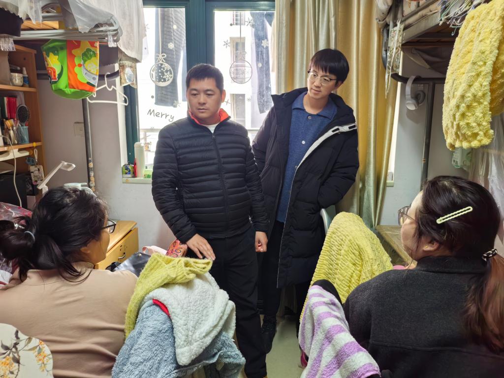 在毕业班学生宿舍,辅导员们重点关切其考研复试准备情况,细致了解备考进度与存在的困难,给予针对性鼓励与指导;同时,积极引导毕业生把握春招关键期,主动关注就业信息,合理调整就业预期,积极投递岗位、参与招聘。此外,辅导员们还叮嘱全体学子,要注重身心健康,合理安排作息,坚持适当户外运动,保持积极向上的精神面貌,兼顾学业与生活的平衡。