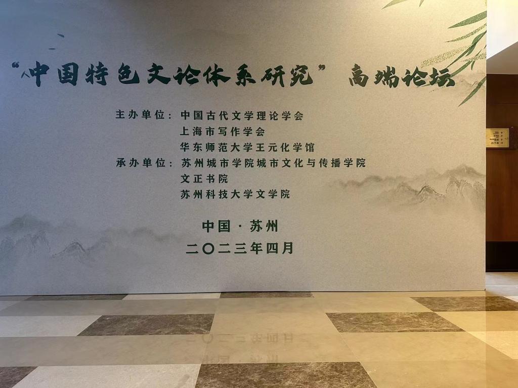 4月15日至4月17日,中国古代文学理论学会、上海市写作学会、华东师范大学王元化学馆联合主办的“中国特色文论体系研究”高端论坛会议在苏州召开,苏州城市学院城市文化与传播学院、文正书院、伟德国际victor1946承办了本次会议,伟德国际victor1946院长凌郁之、副院长孙虎、王海远教授和敬文书院路海洋院长参加本次会议。
