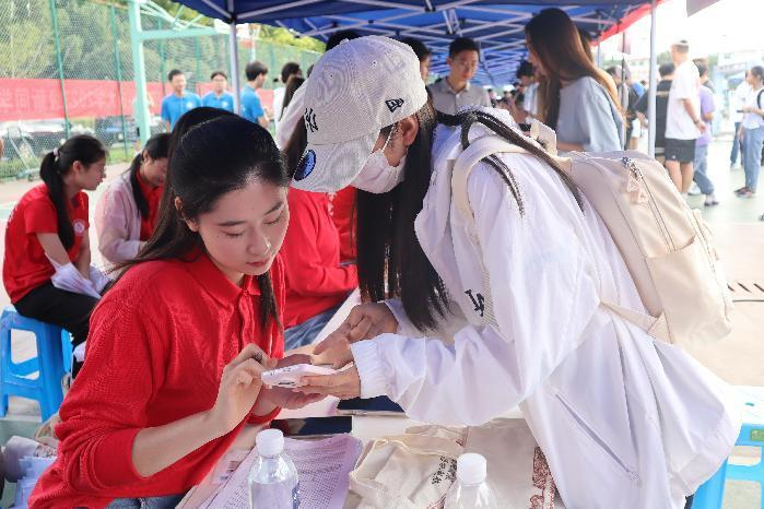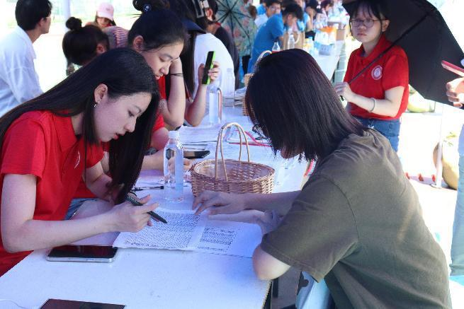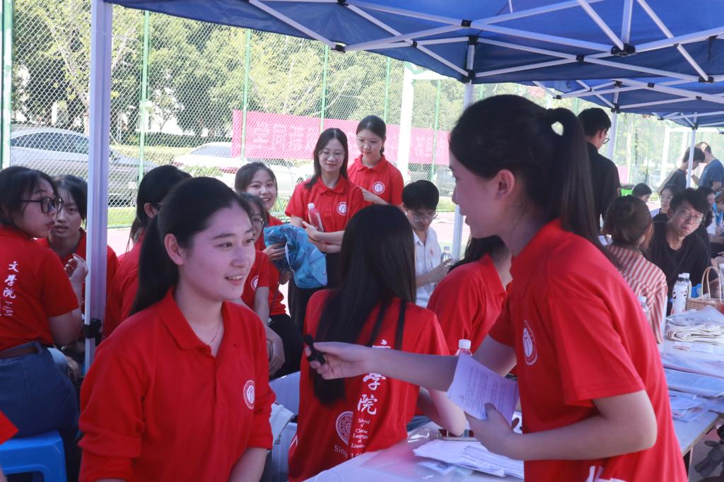 在伟德victor1946的校园里,随处可见身着伟德国际victor1946院服的志愿者,他们早早来到伟德国际victor1946的迎新帐篷前,整装待发,带领新生及家长熟悉入学流程,给新生分发包含印有伟德国际victor1946logo的帆布袋、校园一卡通和心理健康咨询卡等在内的入学大礼包,为新生指示道路、搬运行李。志愿者们来回奔波,构成了迎新现场最耀眼的那一抹“文院红”。