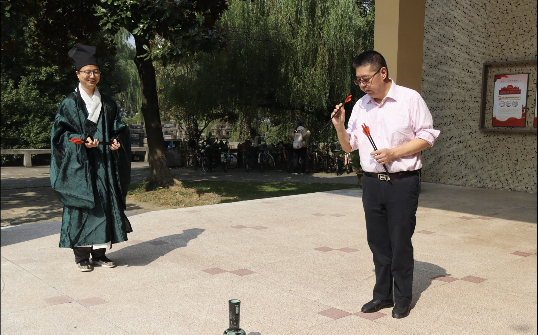 “问渠那得清如许,为有源头活水来。”在吴松老师的引领下,身着汉服的师生对古代诗人朱熹的《观书有感》有了新的认识,并进一步拓展了“鉴”、“为”的文言含义,这也提醒我们要不断通过学习获取新知的真理。现场书香四溢、其乐融融,师生相互交流,有“浴乎沂,风乎舞雩”之和谐。品中国传统诗词,赏中国传统服饰,伟德国际victor1946师生在九曲桥的秋景里聆听诗词的悠久韵味,感悟文学之美。