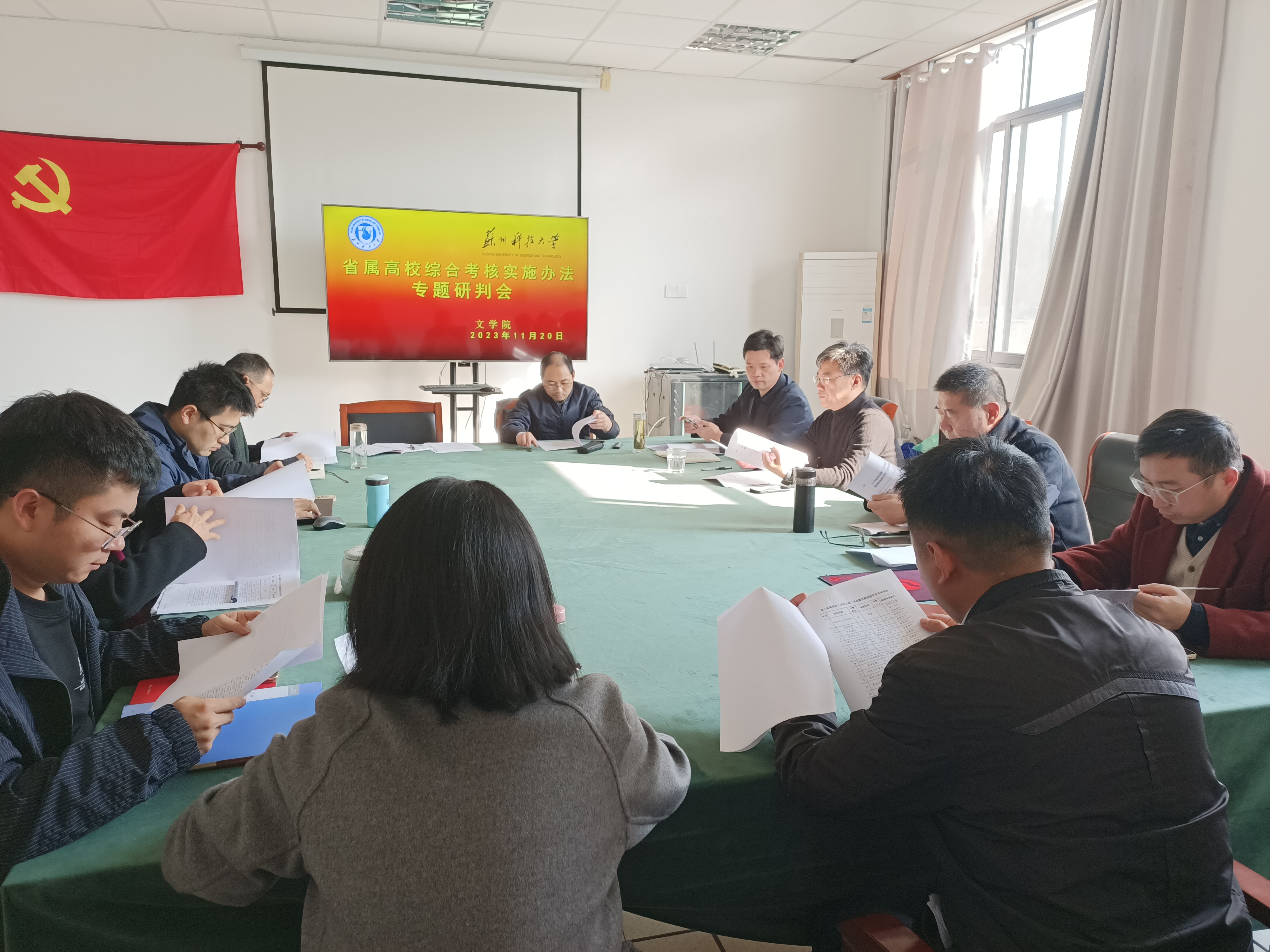 凌郁之首先解读中共江苏省委考核工作委员会印发《2023年度省属高校高质量发展综合考核指标体系及实施细则》的通知文件精神。参会人员根据2023年度省属高校(本科高校)高质量发展绩效评价考核指标体系,在高层次人才及团队、师资结构、学科建设、教学投入度、教学平台及教学成果、专业与课程、学生培养等15个指标逐一认真分析研究评分细则,进一步明晰学院任务数量和质量要求,对照学院实际,抓得分点、补强短板,推动学院综合考核工作取得成效。