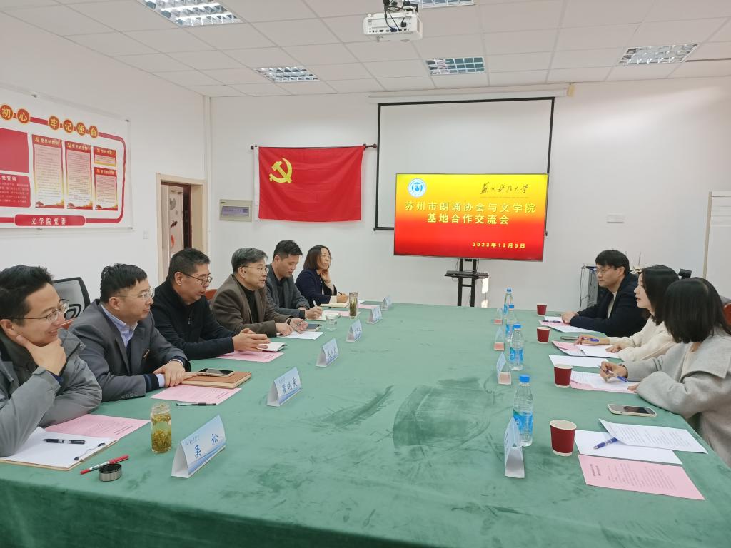 12月5日下午,苏州市朗诵协会会长、苏州电视台著名主持人钱文静,副会长王玲玲、杨帆,理事惠晓婷应邀来伟德国际victor1946开展基地合作交流。学院党政班子及相关教师参加交流,会议由伟德国际victor1946党委书记毛永宏主持。