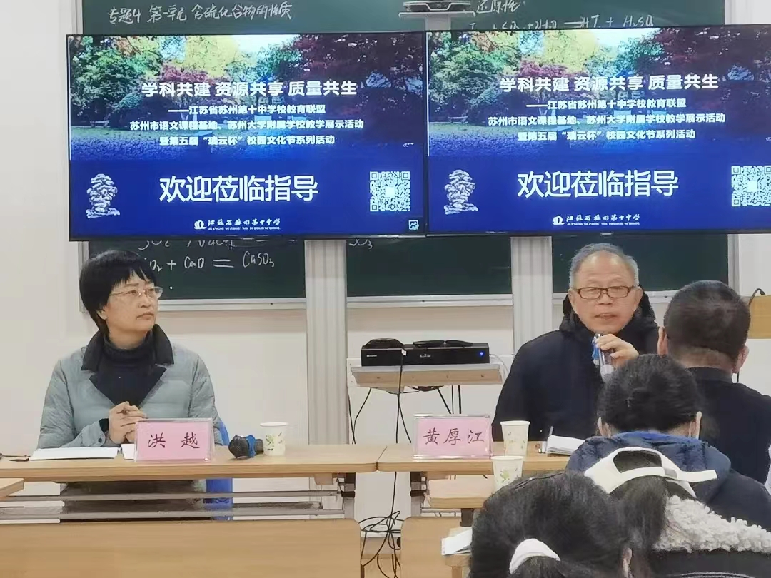 12月15日,伟德国际victor19462023级学科教学(语文)研究生和部分汉语言文学专业本科生在鲍开恺老师的带领下,赴江苏省苏州第十中学校参加该校主办的“学科共建 资源共享 质量共生”苏州市2023年教育联盟联合教学展示活动。