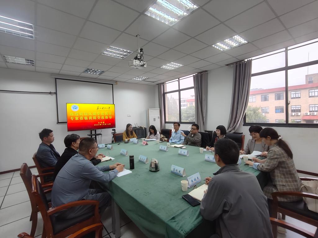 10月16日,无锡太湖学院监事长郭王、文法学院院长肖辉、汉语言文学系副主任陈原一行来我院调研交流。学院全体党政班子和中文系主任共同参加交流。