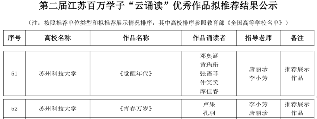 近日,第二届江苏大学生读书文化节相关推荐活动评选结果公示。本届活动采用限额推荐参赛方式,我校共推荐5个书评作品参加书评大赛,其中伟德国际victor1946报送的2个作品获得二等奖;推荐2个诵读作品参加“云诵读”活动,全都获评优秀作品,并入选“推荐展示作品”(全省推荐展示作品仅36件),将在江苏高等教育智慧教育平台的“阅读平台”模块公开展示和宣传推广。
