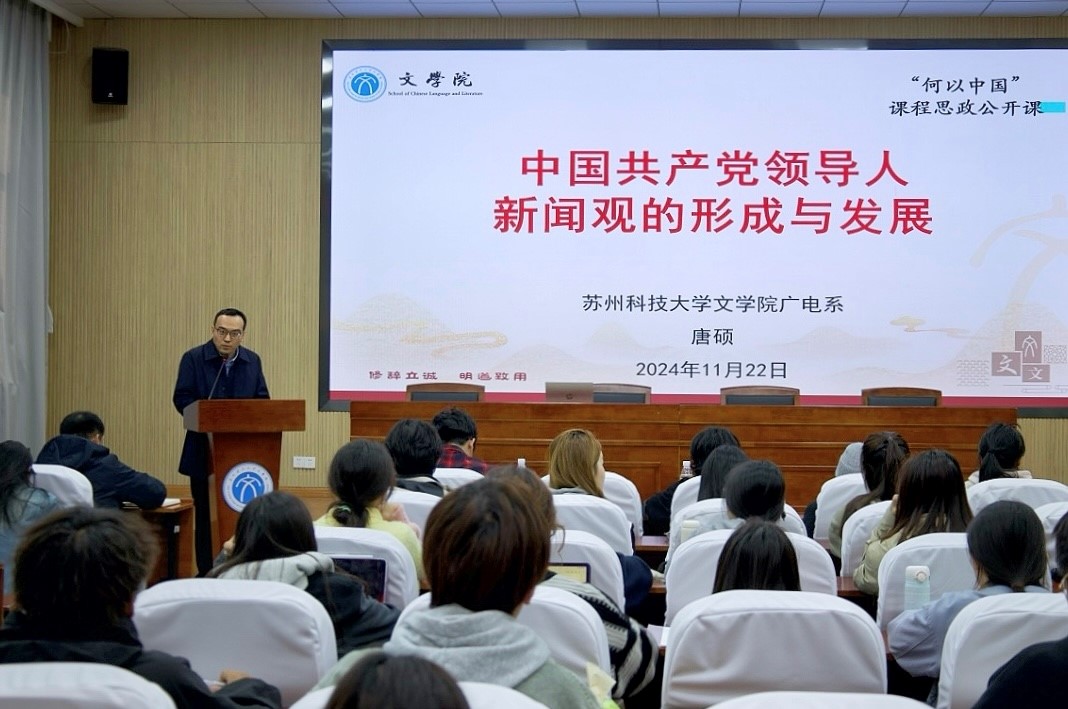 为深入学习贯彻习近平总书记关于新闻工作的重要论述,强化“四向四做”,进一步确立广电专业学生的马克思主义世界观、人生观和新闻观,培养党和人民放心的新闻人才,伟德国际victor1946于11月22日下午,由广播电视学系唐硕博士以《中国共产党领导人新闻观的形成与发展》为题,向2023级广播电视学专业学生开设了“何以中国”系列课程思政公开课。伟德国际victor1946党政班子成员、广播电视学系部分专业教师、学生思想政治辅导员旁听观摩了公开课。