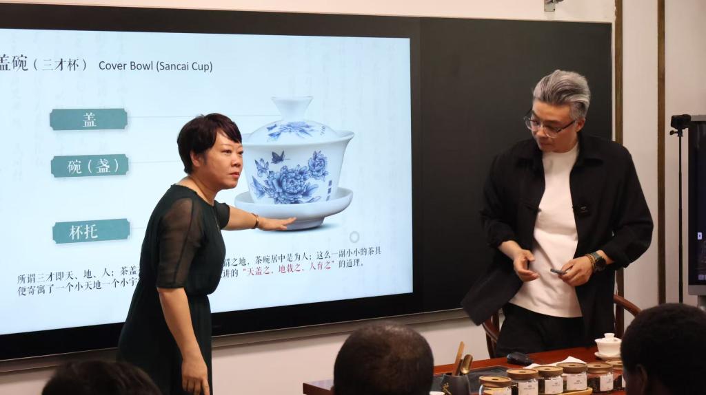 赵瑾对到场嘉宾和留学生表示热烈欢迎,孙虎向李轶先生授予伟德国际victor1946兼职导师聘书。李轶以生动的语言和丰富的图片资料,带领留学生们穿越时空,领略中国茶文化的千年魅力。他从唐朝的煎茶、宋朝的点茶,到明清的泡茶,详细讲解了中国茶文化的历史沿革,并分享茶礼、茶道和茶文化的传承等。讲解过程中,留学生们积极互动交流,现场气氛热烈融洽。在"春日品茗"环节,大家见证了一壶清茶的诞生。在碧螺春茶的清香中,留学生们细细品味茶香余韵,感受中国茶文化的独特魅力,并分享了本国饮食文化等。