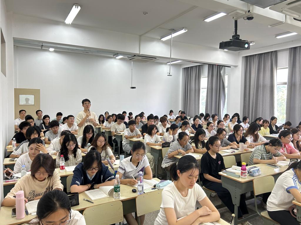 9月8日上午,全体院领导集中听了刘翔老师的《基础写作》课,刘翔老师围绕“如何学习写作”以及“大学写作课的特性”两个关键问题展开,结合汉语言文学师范专业培养目标,为同学们厘清了课程的核心目标,激发大家探索写作的兴趣。院领导重点关注了教师授课质量、学生课堂参与度及智慧教学手段的运用。从听课情况来看,刘老师备课充分,教学状态良好,课堂内容充实;学生全体出勤,精神饱满,展现了新学期良好的精神风貌。