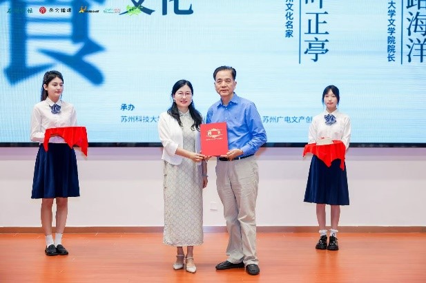 10月15日下午,苏州广电文产创意中心都市音乐频率全新推出的青年文化品牌“当燃艺语”艺术讲堂在伟德victor1946正式启动,校园艺术展陈品牌“微展”也同步亮相。活动特邀苏州市政协原文史委主任、苏州民间文艺家协会原主席叶正亭受邀走进伟德victor1946,以“苏州美食文化”为主题,与学校师生展开了一场生动有趣的文化对话。讲座由全国优秀音乐主播、苏州都市音乐广播陆忆思主持,伟德国际victor1946院长路海洋作为对谈嘉宾共同参与,带领青年学子从舌尖到心灵,深入体验江南文化的历史与精髓。