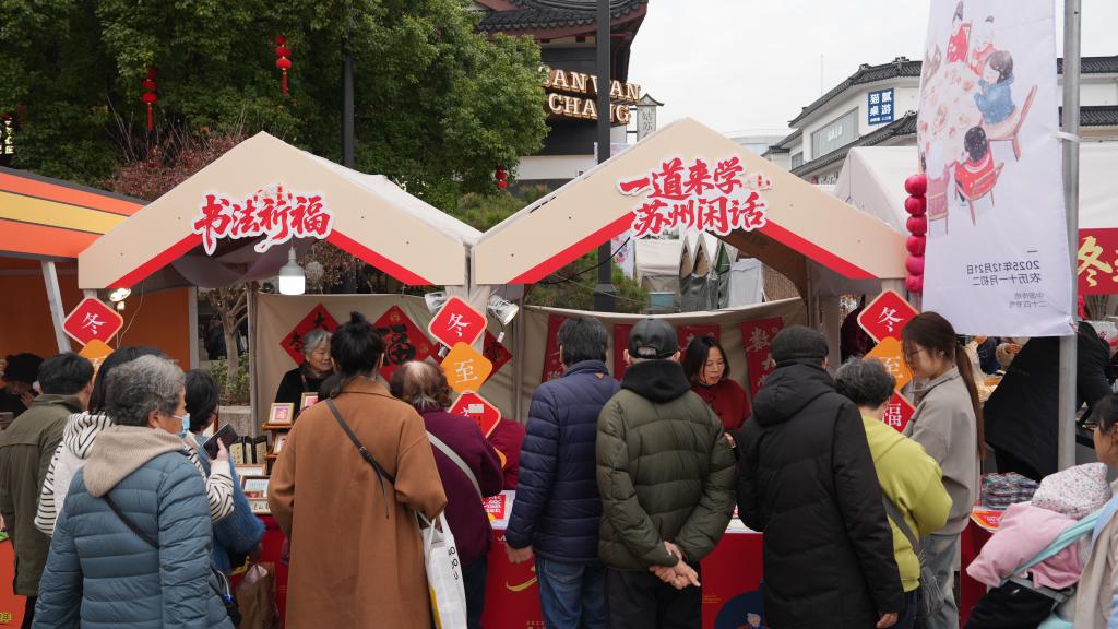 12月19日,姑苏区第十一届“冬至大如年”民俗文化活动暨“文明暖冬行,福气惠姑苏”活动在苏州观前街新艺广场盛大举行。当天,以“食、养、文”为主题的“非一般的市集”同步启幕,41个展位汇集了老字号冬至美食、苏绣和宋锦等非遗产品,以及剪纸、木版年画制作、学说苏州话等丰富多彩的文化互动活动。这场延续十载的文化盛宴,恰逢“苏州冬至习俗”入选省级非遗项目三周年,为古城的寒冬增添了别样暖意。