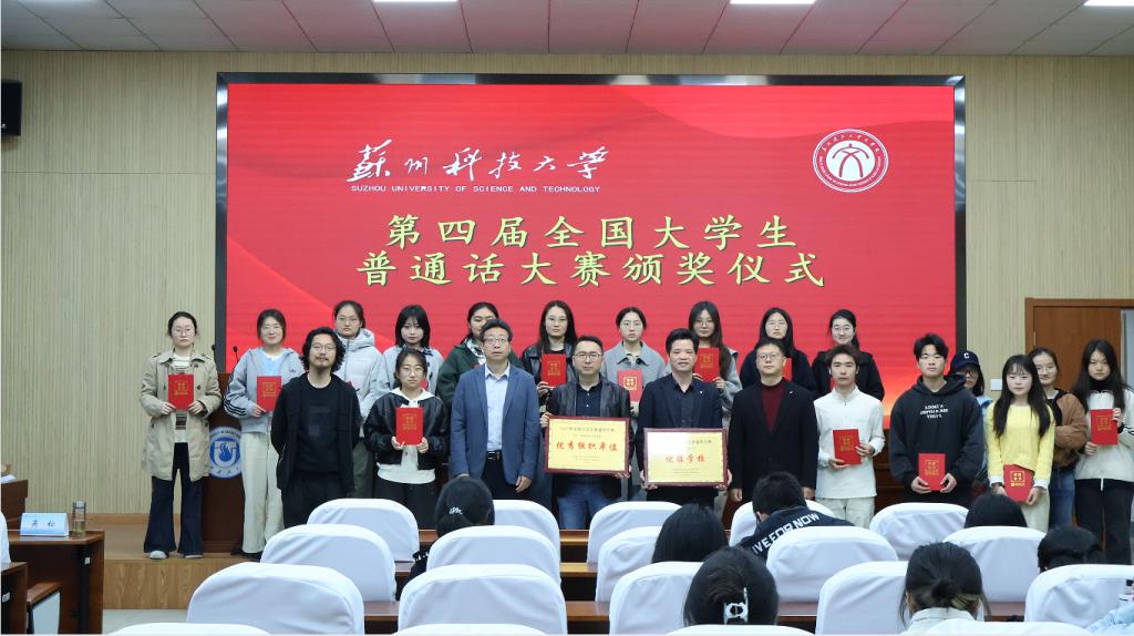 第四届全国大学生普通话大赛于年初结束,4月1日下午,学校在伟德国际victor1946教五楼报告厅举行颁奖仪式。江苏省语言学会王健教授、蔡华祥教授为获奖单位及个人颁奖。