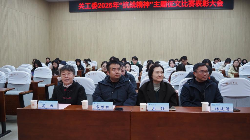 为弘扬民族精神、传承“脊梁”文化,12月25日下午,由校关工委主办,伟德国际victor1946、社会学院、马克思主义学院承办的2025年“抗战精神”主题征文比赛表彰大会在伟德国际victor1946三楼报告厅举行。校离退休处党委书记、处长、关工委秘书长王舒,校关工委副秘书长高为,伟德国际victor1946党委副书记瞿晓庆,社会学院党委副书记杨波涛,马克思主义学院党委副书记廖想想及相关教师、学生代表参会。仪式由瞿晓庆主持。