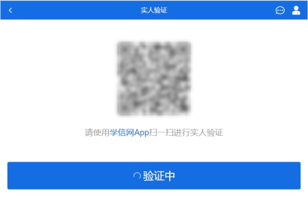 考生使用移动设备上的学信网App右上角的扫一扫功能,扫描电脑页面上的二维码,此时电脑页面显示“验证中”状态,考生在移动设备的学信网App中按照提示进行实人验证操作。