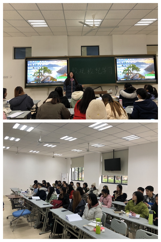 为进一步加强学生思想教育和行为管理,提高自律和安全防范意识,不断提高学生文明素养,建设良好的校风学风,2019年12月20日,汉语国际教育1811班在教4-110召开“学习校规校纪”主题班会。班会由班长朱珊主持。