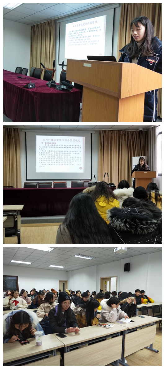 班会分为以下内容:首先由主讲人对班级同学进行了“加强宿舍及校外住宿管理”的相关教育,其中明确规定:建立归宿情况通报制度,对于应归未归的要及时了解情况,作出应对,从第十七周开始,学院以周报形式上报学校。其后又对同学们进行了关于“伟德victor1946宿舍管理规定”的相关教育,让同学们明确住宿规则,禁止携带和使用一切违章电器,并列举了一些近期来本学院使用违章电器受到处分的例子,让同学们引以为戒。