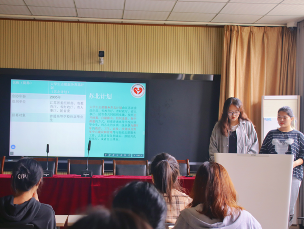 宣讲分为“苏北计划”、“西部计划”两个板块”来向同学们详细说明并答疑。