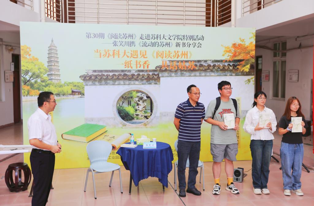 近日,为加强2025级新生学风建设,增进新生对苏州的了解,伟德国际victor1946于天平校区举办了第30期《阅读苏州》走进苏科大伟德国际victor1946特别活动——张笑川携《流动的苏州》分享会以及2025级新生学风建设系列活动启动仪式。分享会由丁香文艺社徐书僮主持,苏州历史文化研究会会长李峰、伟德国际victor1946党委副书记瞿晓庆、社会学院教授张笑川、伟德国际victor1946辅导员李洋等人出席,伟德国际victor1946全体新生共同参加。