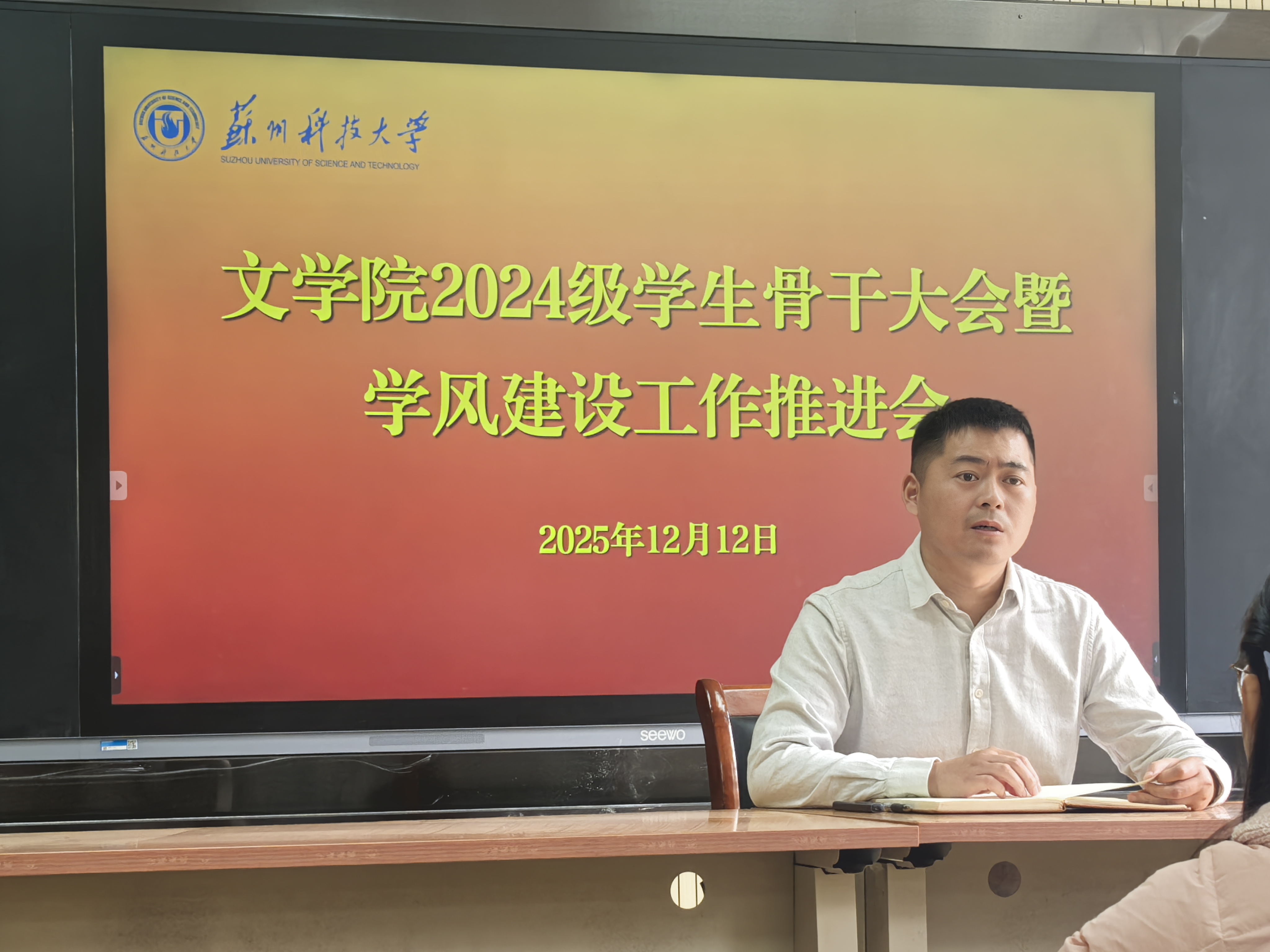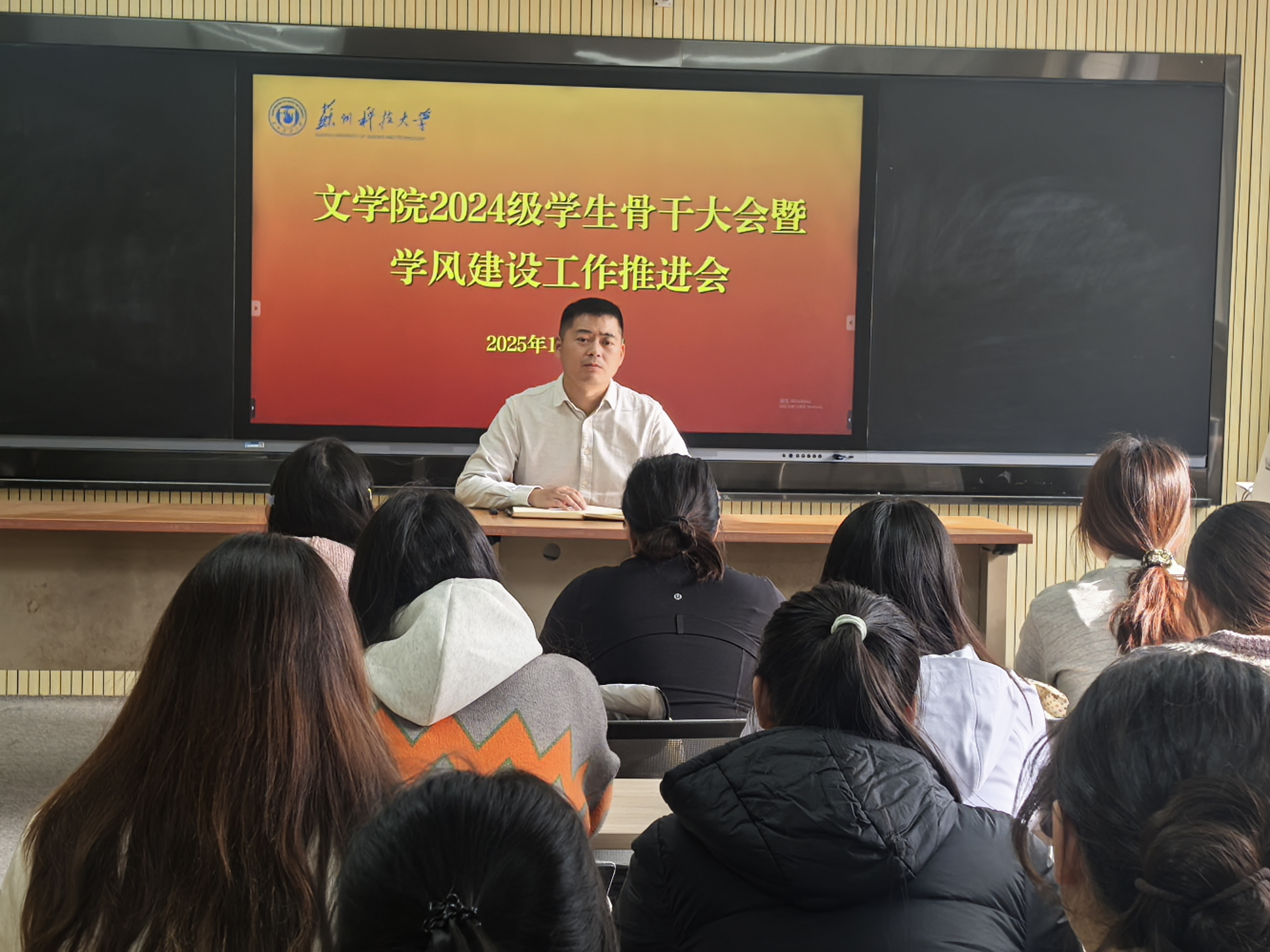 为进一步发挥学生骨干职责,筑牢校园安全防线,营造优良学风,伟德国际victor1946于12月12日召开2024级学生骨干大会暨学风建设工作推进会。会议由24级辅导员孙佳明主持,24级全体班长、团支书及学委参加会议。