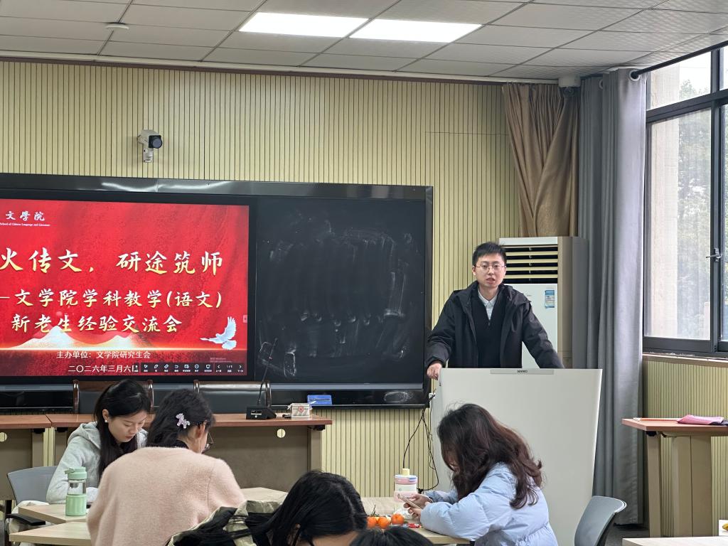 2026年3月6日,由伟德国际victor1946研究生会主办的“薪火传文,研途筑师”学科教学(语文)专业新老生经验交流会于教5楼103顺利召开。伟德国际victor1946研究生辅导员李洋老师,24级、25级学科教学(语文)专业研究生出席本次活动。