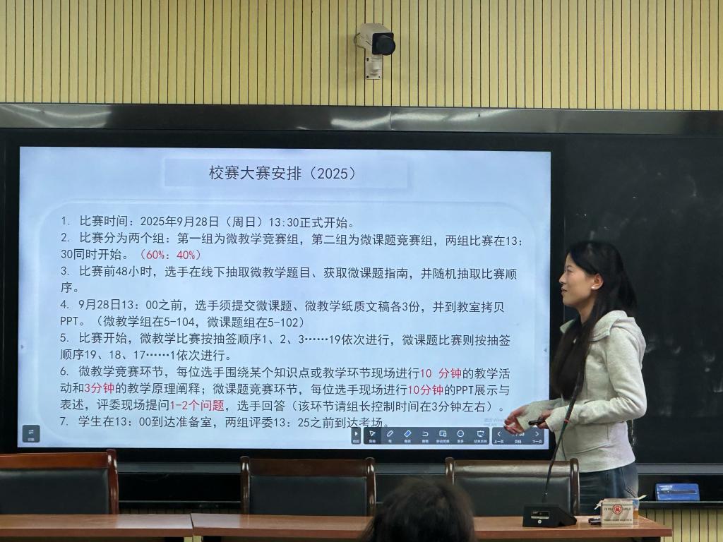辅导员李洋老师从一张“时间表”引入,围绕专业学习、实践能力、职业规划三个方面发表讲话。他鼓励同学们要“精耕专业”,主动学习;“落地实操”,走上讲台;“清晰规划”,多元准备。