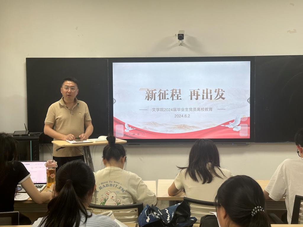 瞿晓庆从党史发展与民族复兴历程出发,运用马克思主义视角,重点分析中国共产党如何在历史进程中保持先进性,在自我革命中永葆党的青春与活力。瞿晓庆推荐毕业生党员们阅读《论党的自我革命》,对照党的自我革命,从党员的自我革命出发,注重自我更新,不断增强党性修养,时刻绷紧“思想之弦”。随后,瞿晓庆做专题党纪学习教育,勉励各位毕业生党员,在未来的生活中,牢记使命,不忘初心,争做党与国家的栋梁。