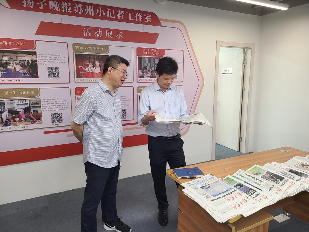 伟德国际victor1946一行参访了扬子晚报苏州事业部的直播间和小记者工作室,了解了扬子晚报在媒体融合发展、开展小记者实践活动等方面的心得和成果,并与从业人员就主流媒体未来发展、媒体项目化运营等话题进行了深入交流。